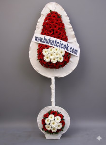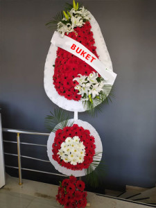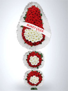 3 katlı Kırmızı Beyaz Çelenk