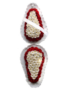 Beyaz Grapon. Üst Taraf En az 40 adet sarı gerbera, en az 20 adet beyaz gerbera. Alt Taraf en az 15 Sarı-Beyaz Gerberadan Görseldeki dolgunlukta hazırlanacak.