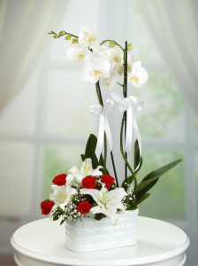 Çift Dallı Mavi Orkide ve Kır Çiçekleri Yaklaşık Ürün Boyutu : 60 cm Kullanılan Diğer Ürünler : Beyaz Seramik Aşkı bulduğunuz an ona en güzel hediyeyi sunmak istersiniz. Şimdi aşkınızı anlatmak için en güzel orkide ve kır çiçeği aranjmanını tercih edebilirsiniz.