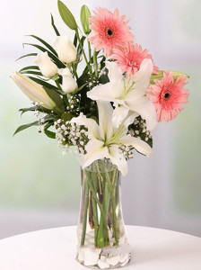 Vazoda Lilyum Pembe Gerbera