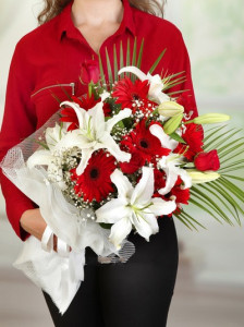 Lilyum Kırmızı Gerbera Buketi