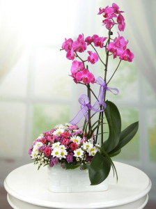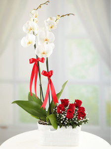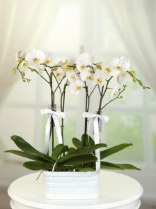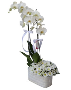 Beyaz Aranjmanlı Çift Dallı Orkide